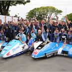 John Holden and Andy Winkle claimed their second win at the Isle of Man TT, fuelled by Monster Energy, five years after their first win, when they benefited from the final lap retirement of Ben and Birchall. The Lancastrian pair took a dramatic victory by almost a minute from Peter Founds/Jevan Walmsley with brother Alan Founds, partnered by Aki Aalto, in third.