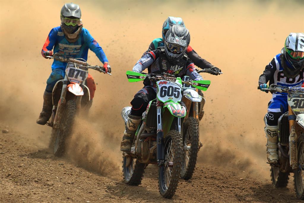 In the Junior Championship the 120 riders were split across 3 groups and produced some great racing in all the races. The opening Junior Championship race would see Aaron Holloway take the start and the early race lead but he was caught and passed late in the moto by eventual race winner Ashly Campbell. Rheis Morter also managed to move into second place ahead of Holloway in third. Fourth and fifth places went to James Wayman and Simon Daniels.