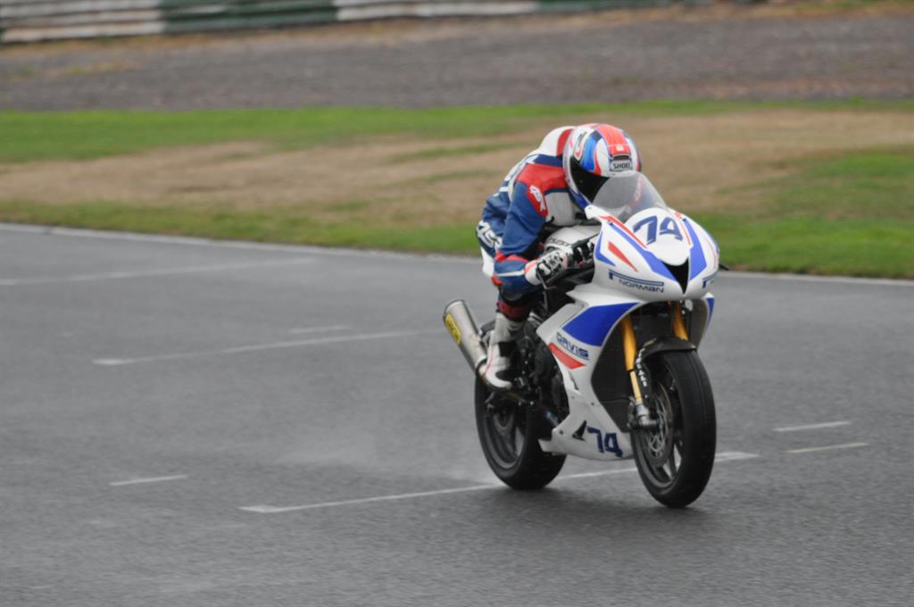 Curtis Wright was the star of a very wet Mallory Park on Sunday, winning all four races that he started. After a constant drizzle throughout qualifying, the proper rain came for the start of racing, and Curtis was the first winner of the day taking the 600 Open class from Michael Tustin with Chris Stuart third with Andrew Wilkinson setting fastest lap on the way to fourth place – a fastest lap of 65 seconds, about 25% over the dry lap record. The second 600 race for the Alan Tolton Trophy saw Curtis win again from Tustin and Jed Bird, a result which opens up a gap in the 600 championship for Curtis over Bird with Andrew Wilkinson still in with a chance of the title in next month’s final round.