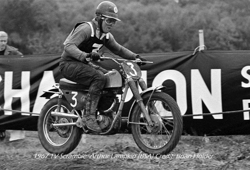 Arthur Lampkins motorcycling career spanned both trials and scrambling where he excelled and became well known on BSA machinery. He won a prestigious Gold Medal at the 1958 International Six Days Trial representing his country and won the Scottish Six Days Trial in 1963. At the Scott Trial in Yorkshire he won the event in 1960, 1961 and 1965. During his scrambling years he won the ACU 500cc British Championship in 1959 and the 250cc in 1961, and in 1963 he was part of winning team from Great Britain at the Trophee Des Nations in Sweden.
