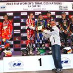 Great Britain, represented by Emma Bristow – Sherco, Rebekah Cook – Beta and Joanne Coles – Gas Gas are the worthy winners of the 2013 FIM Women’s Trial des Nations held in La Chatre, France. The British trio dominated today’s event from start to finish with a winning total that was less than half of their nearest rivals. Spain’s team consisting of Sandra Gomez – Gas Gas, Mireia Conde – Beta and Elisabeth Solera – Gas Gas had to settle for second place on this occasion as their three-year victorious run came to an end. Britain’s last victory was back in 2009, when the same line up of Bristow, Cook and Cole also triumphed over their European counterparts.