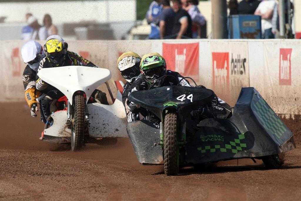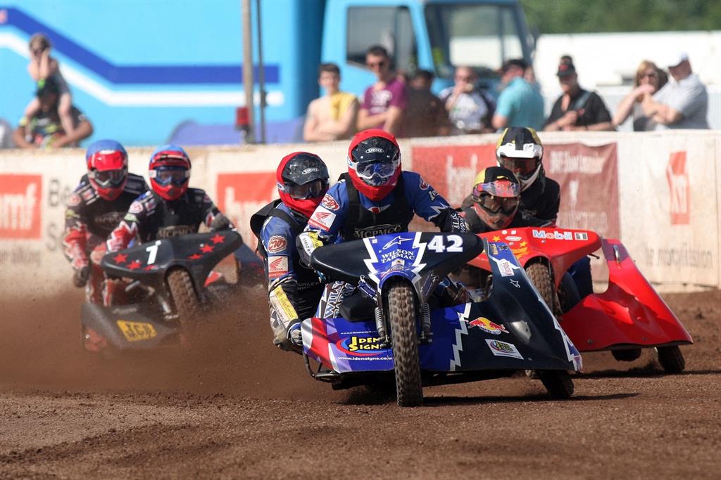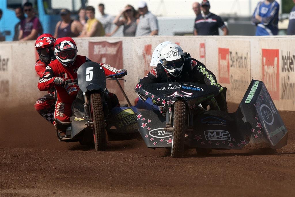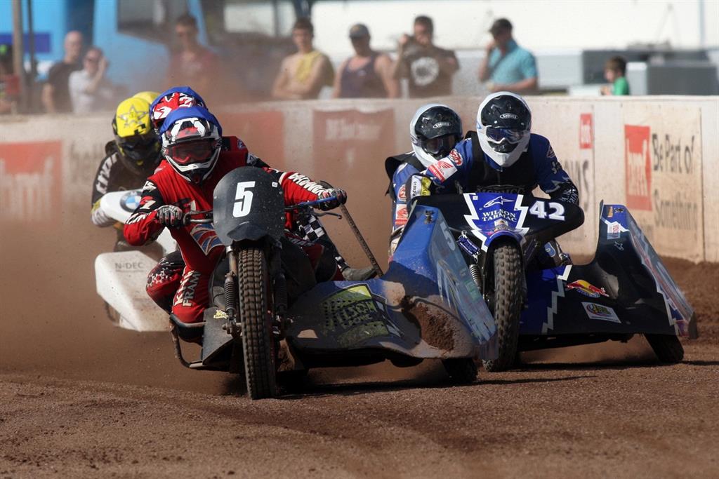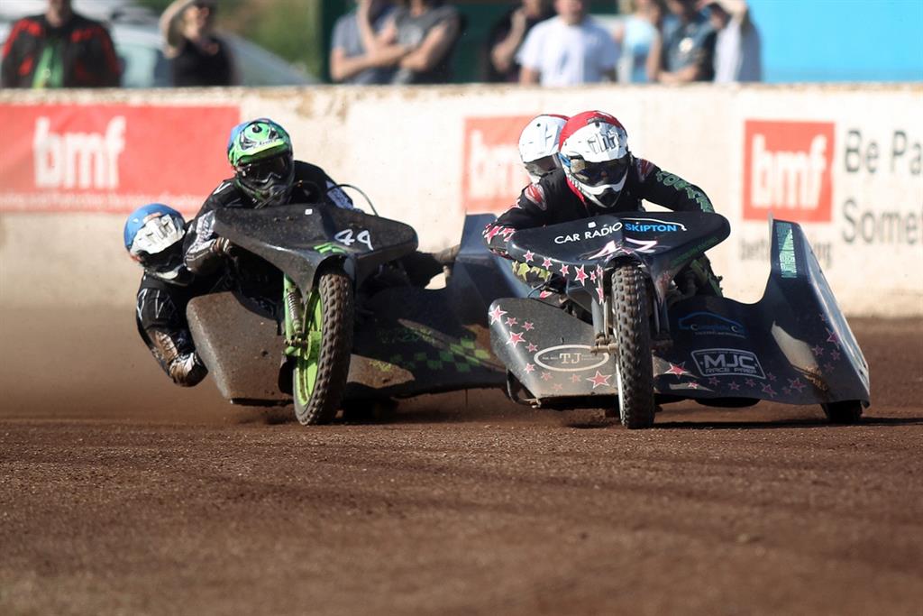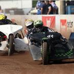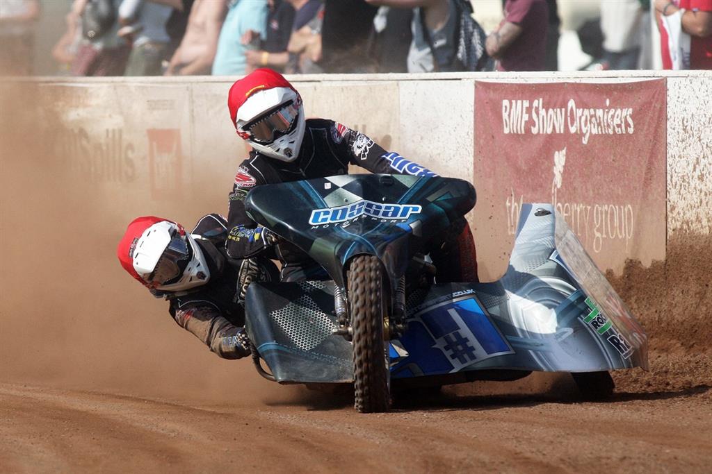 Mark Cossar and Carl Blyth proved just too strong for their rivals in the opening round of the TRSC held at Peterborough Speedway on Saturday. With a backdrop of the BMF Motorcycle Show, the sport of Sidecar Speedway was given an opportunity to show itself in front of new spectators and managed to serve up some decent racing.